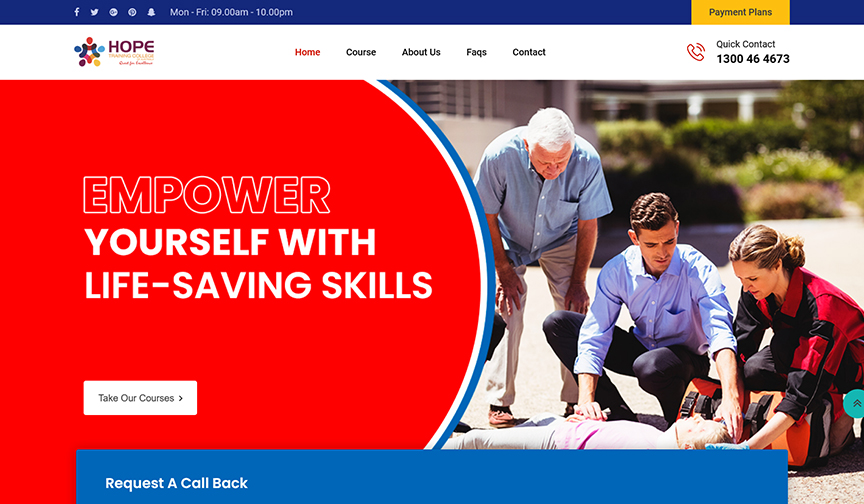 The website developed by Raabta for Hope Training College played a crucial role in expanding educational opportunities, providing high-quality online courses, and empowering students to pursue their careers in aged care, disability care, first aid, and related fields.